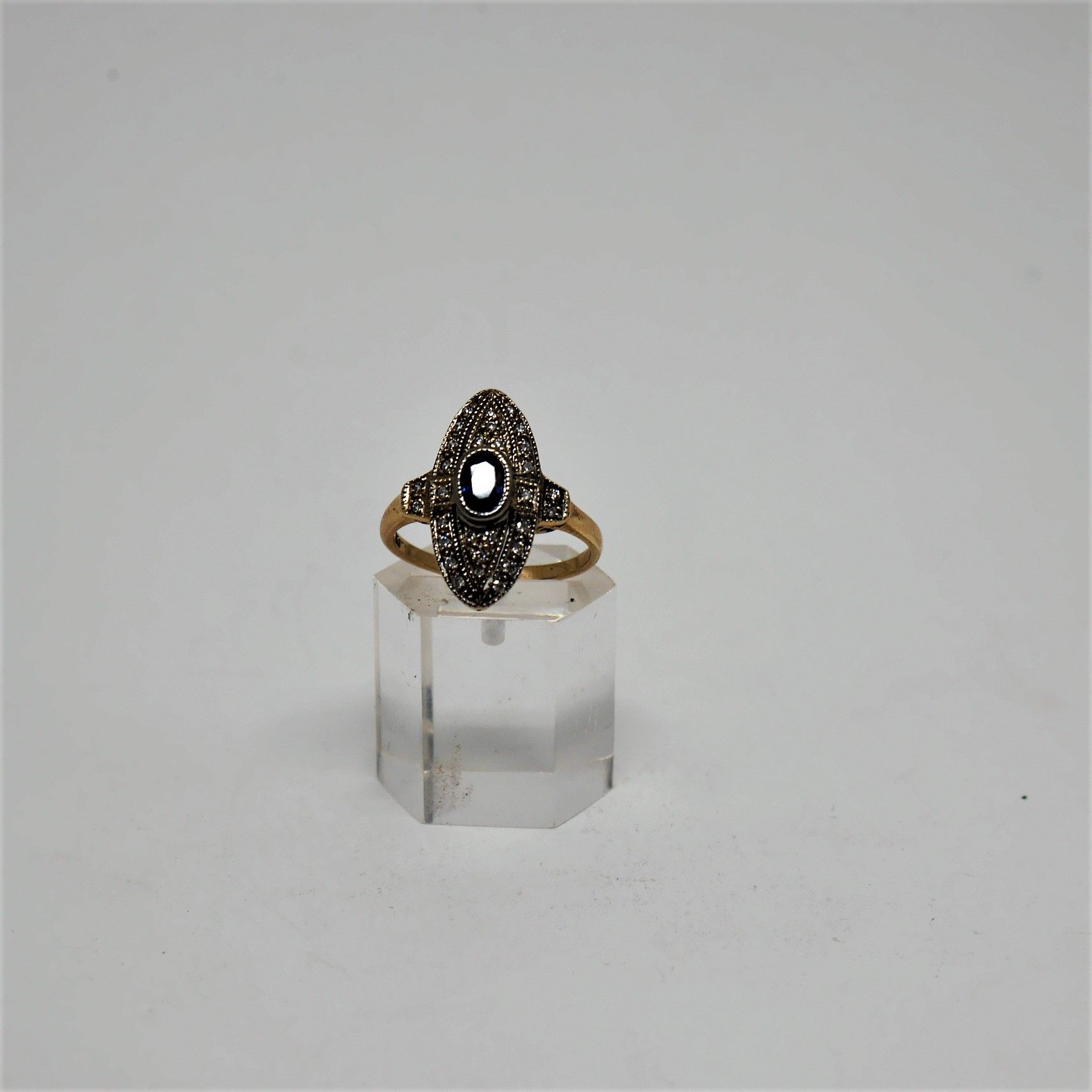 Anillo antiguo de Oro de ley 18 K. con Zafiro y Brillantes