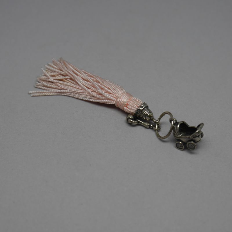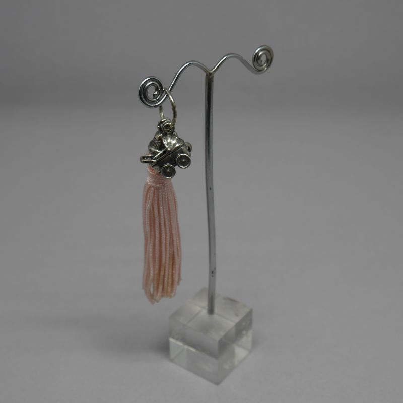 Borlón con colgante de color rosa para carrito bebé de Plata de ley 925 Mils.alt="borlón con colgante para carrito bebé en plata de ley"