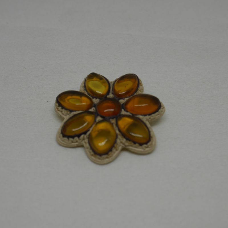 Broche de Ámbar, Cuero y Plata de ley en forma de flor