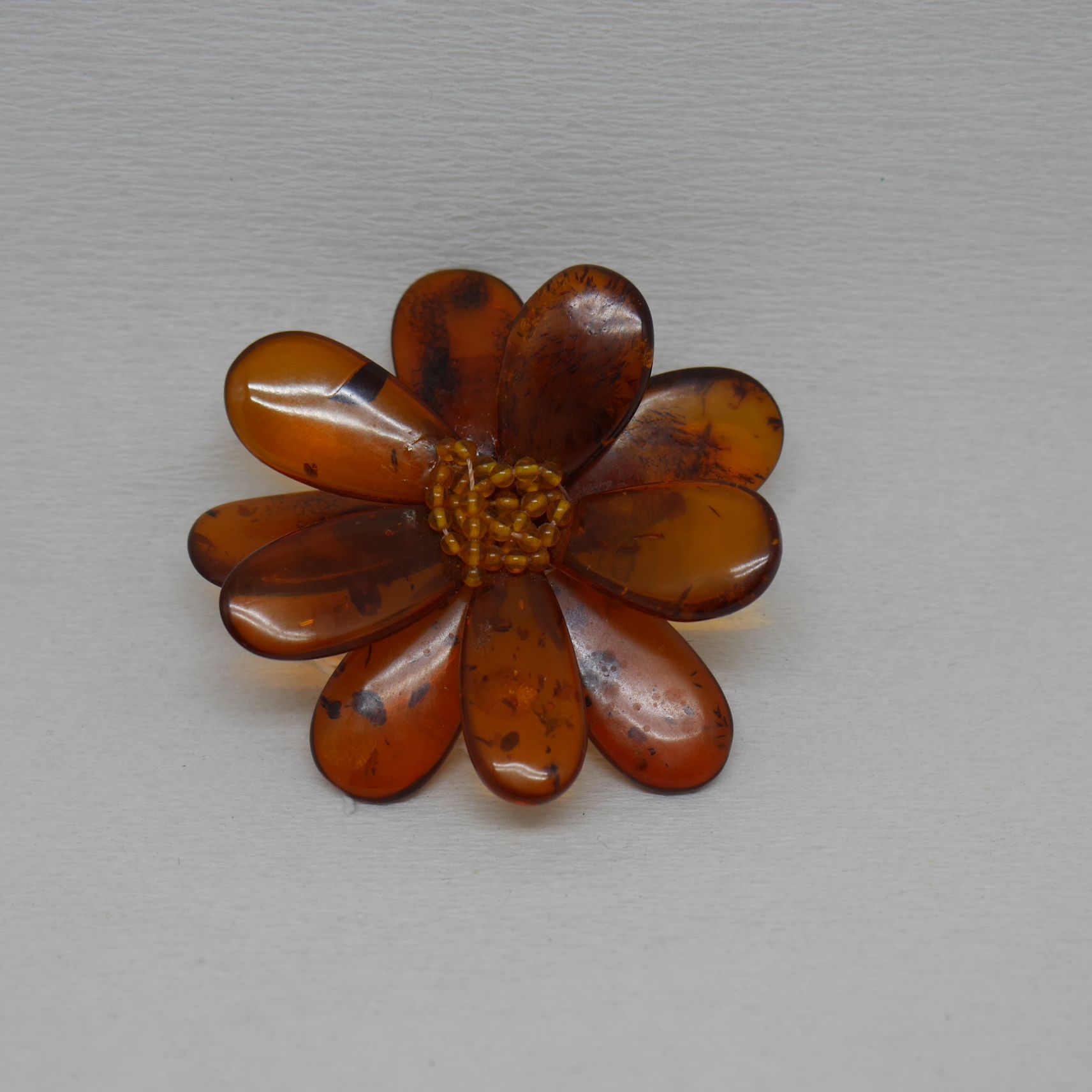 Broche de Ámbar, Plata de ley y Cuero en en forma de flor