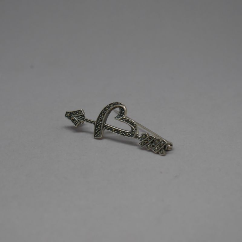 Broche de Plata de ley 925 Mils. con Marcasitas en forma de corazón con flecha