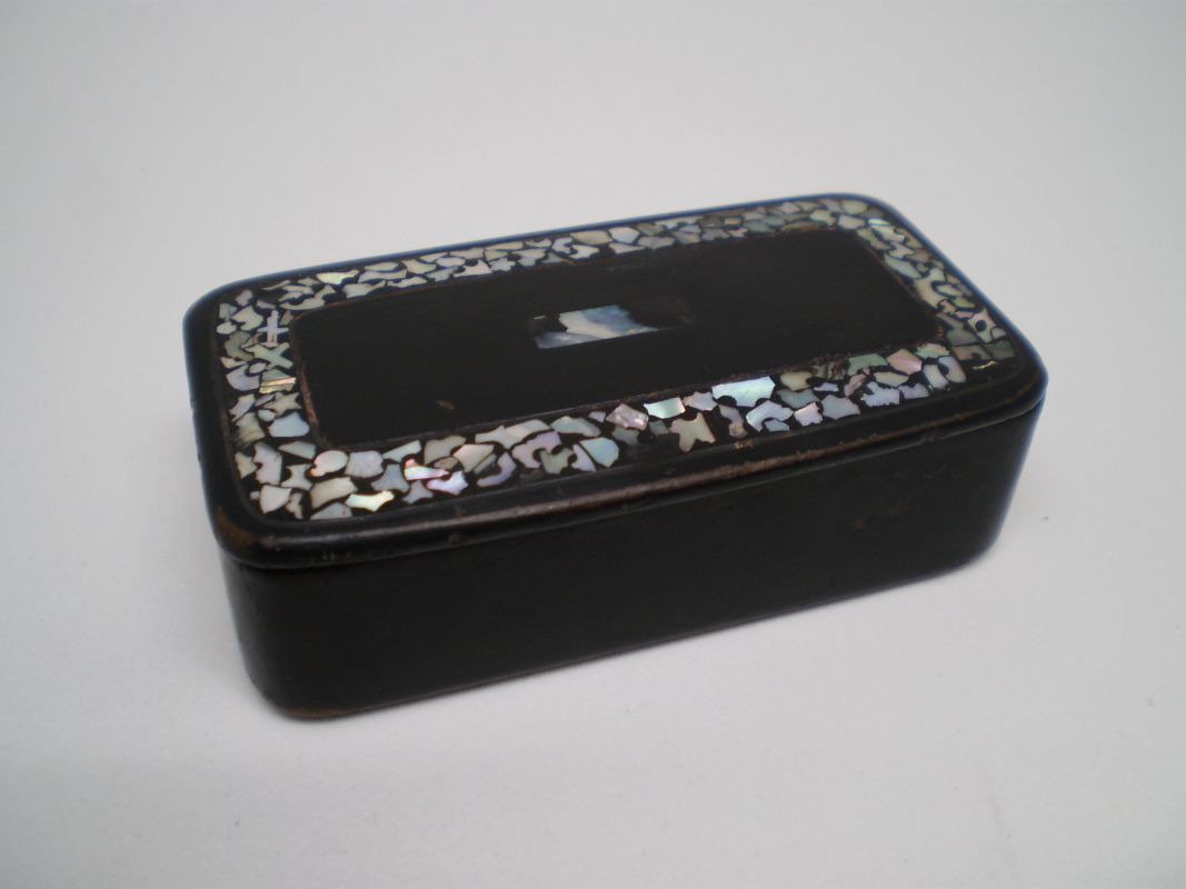 Caja antigua rectangular lacada con inscrustaciones de nacar