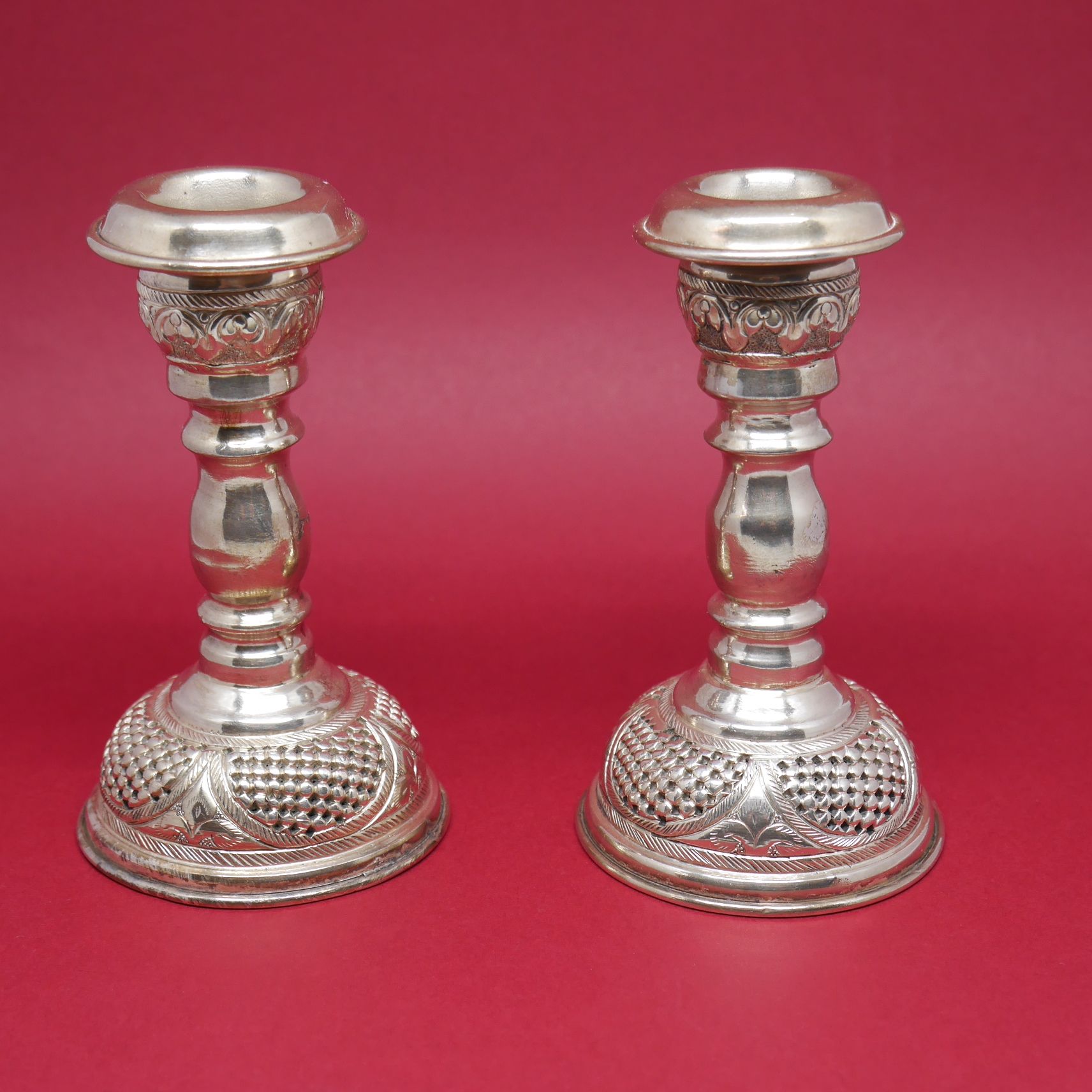 Candelanbros (Pareja) de Plata de ley 925 Mils. tipo antiguo