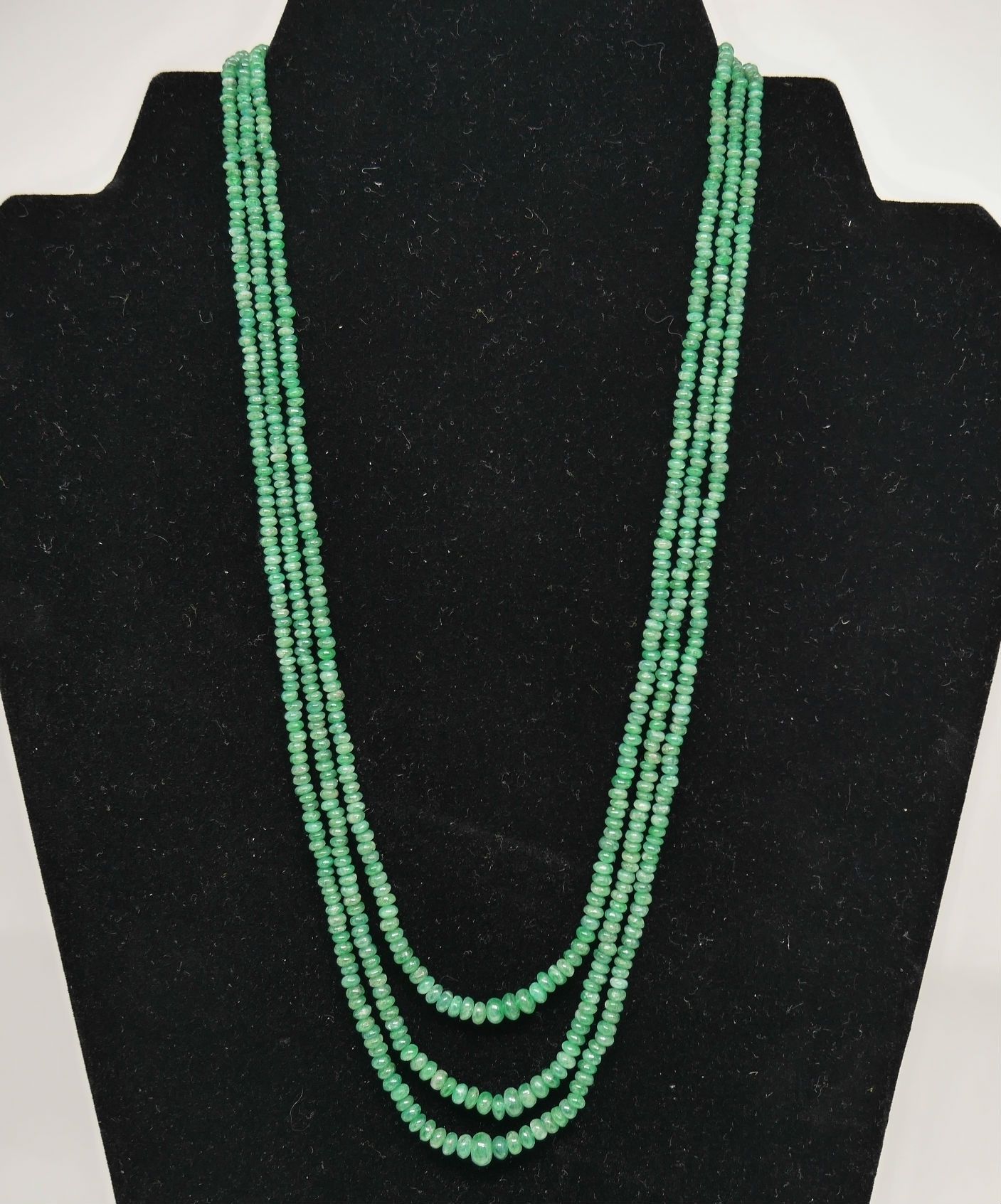 Collar 3 vueltas de Esmeraldas en disminución con cierre de Oro de ley 18 K. y Esmeralda