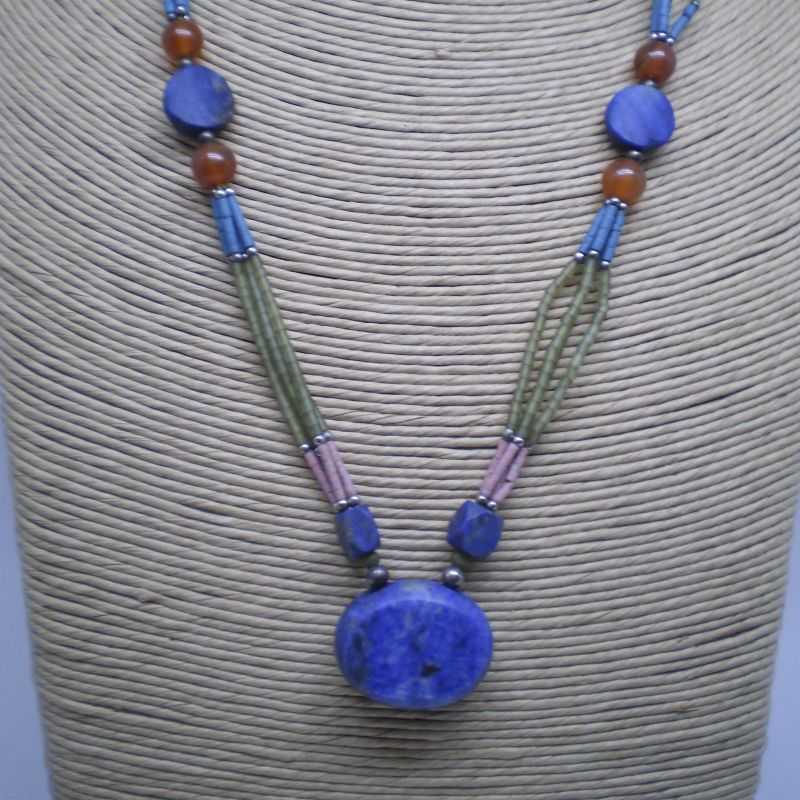 Collar Afgano de alpaca, 3 vueltas, con piedras semipreciosas