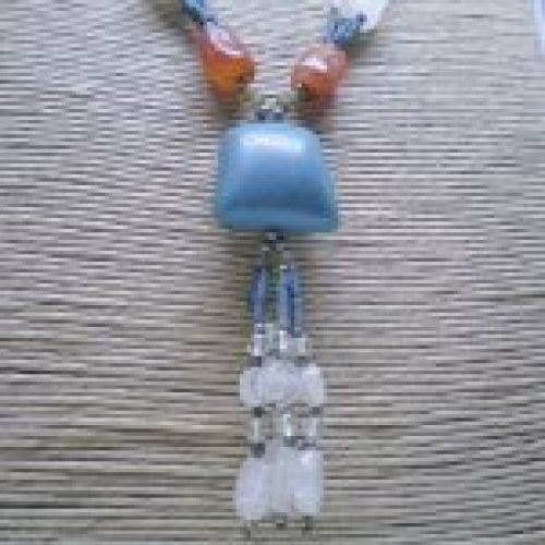 Collar Afgano de Alpaca con Turquesas y Cuarzo blanco