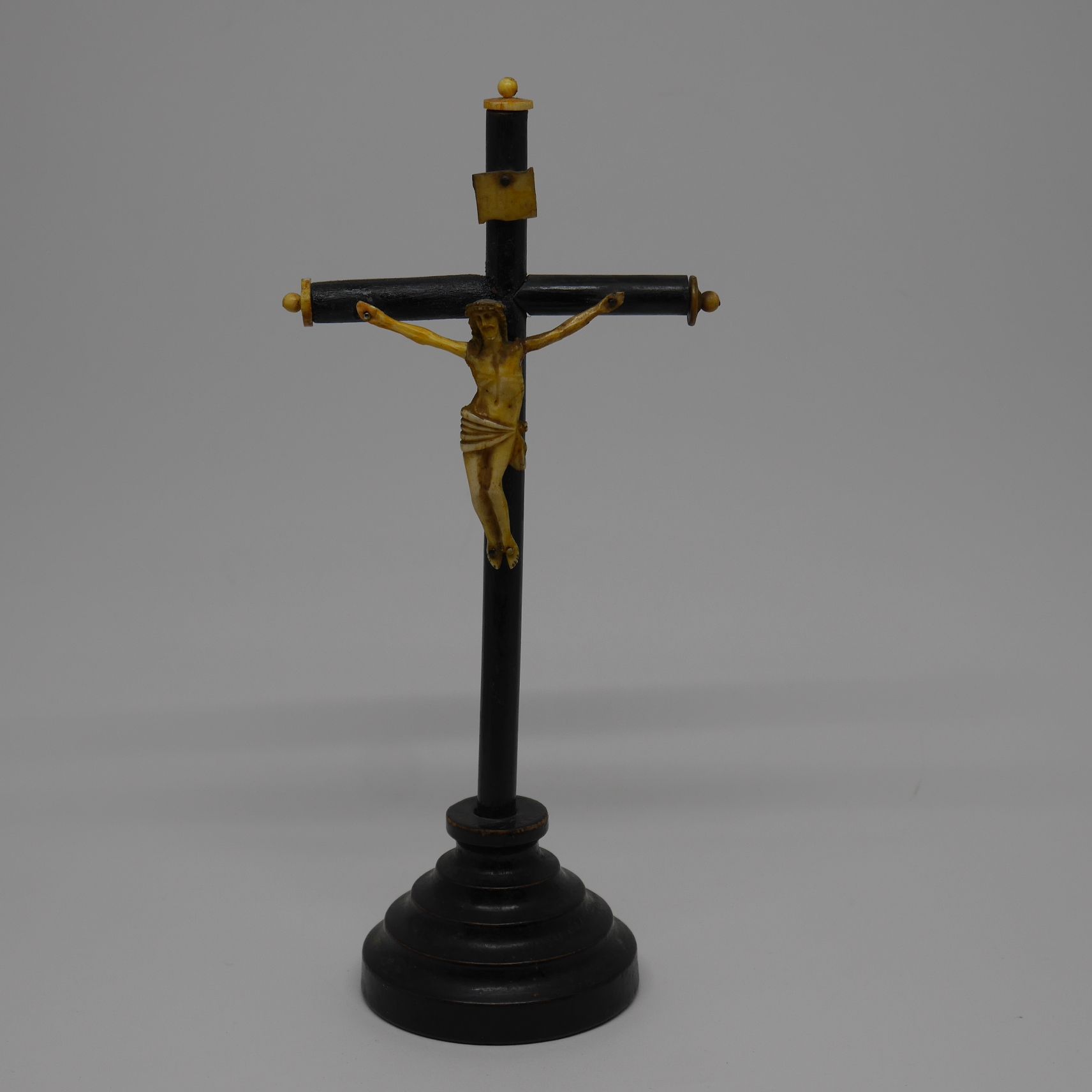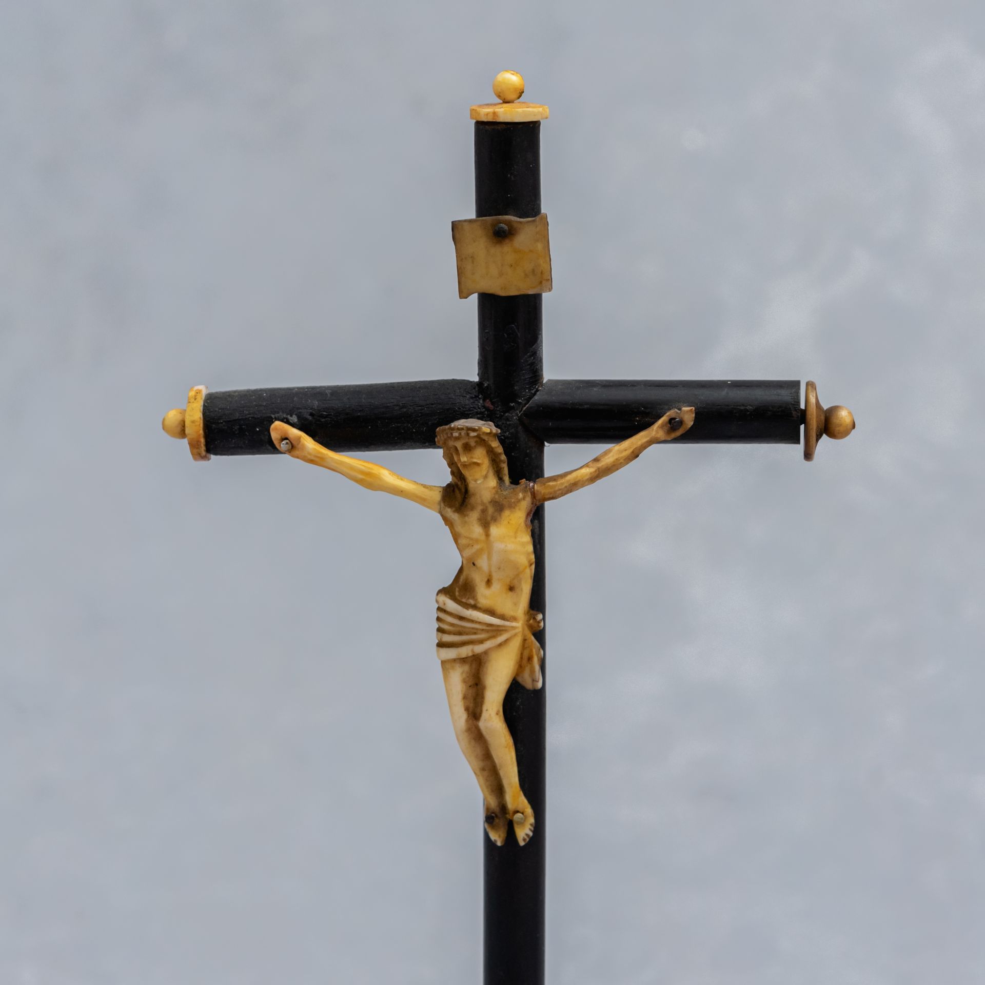 alt="Crucifijo de madera y hueso antiguo"Crucifijo antiguo de madera y hueso