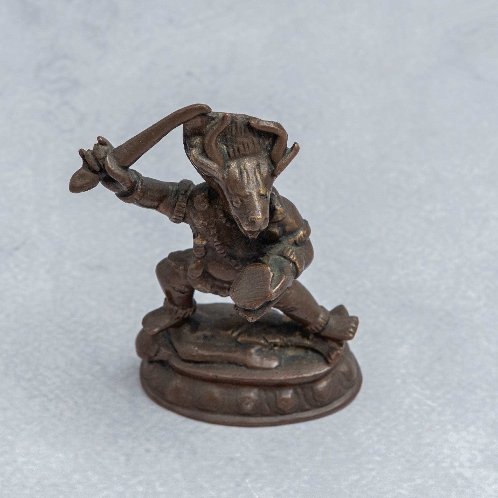 Figura Oriental de Bronce, Guerrero Con Cabeza de Buey