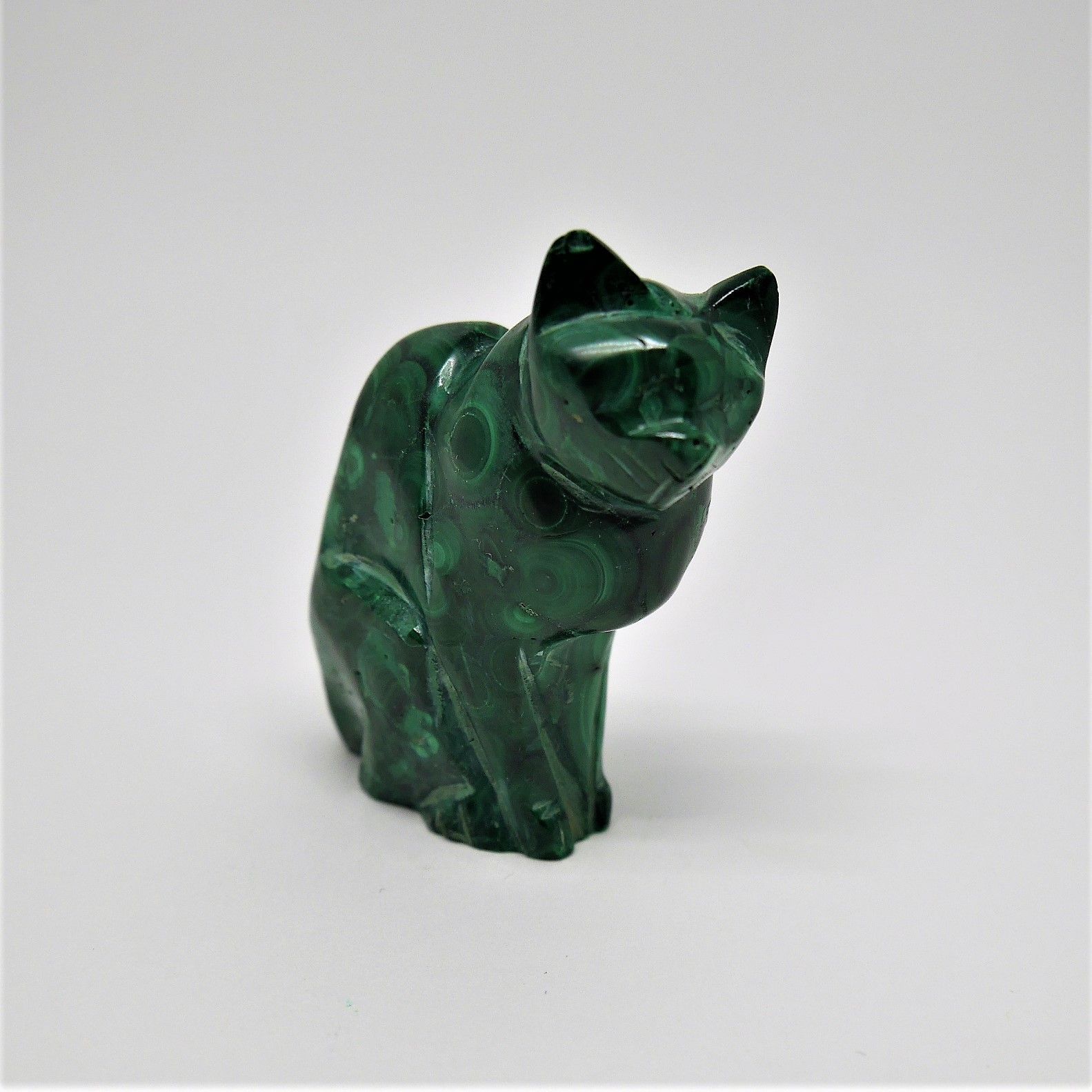 Gato de malaquita en miniatura, tallado a mano en los años 90 en la antigua República del Zaire