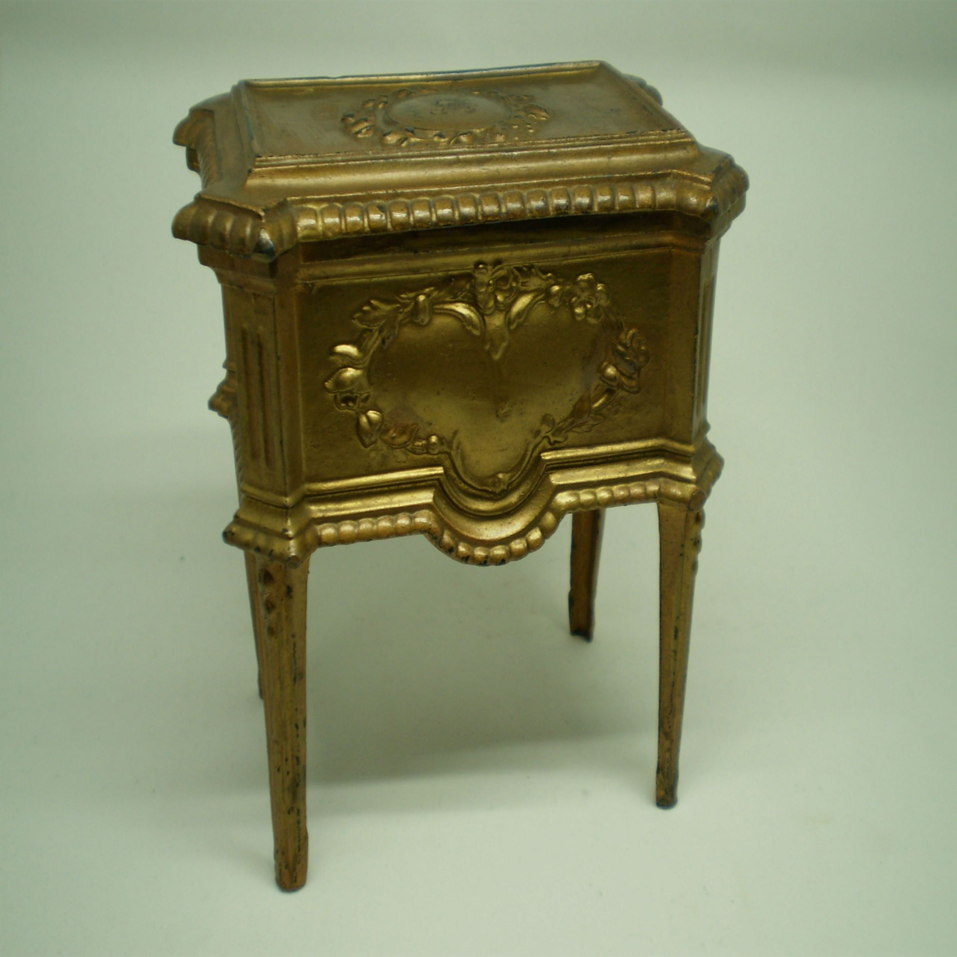 Joyero antiguo de bronce alto, 4 patas