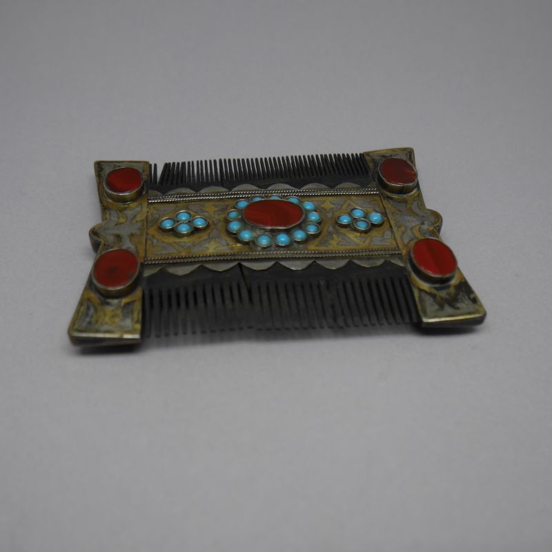 Peine doble Afgano de Plata de Ley con Turquesas y Cornalina
