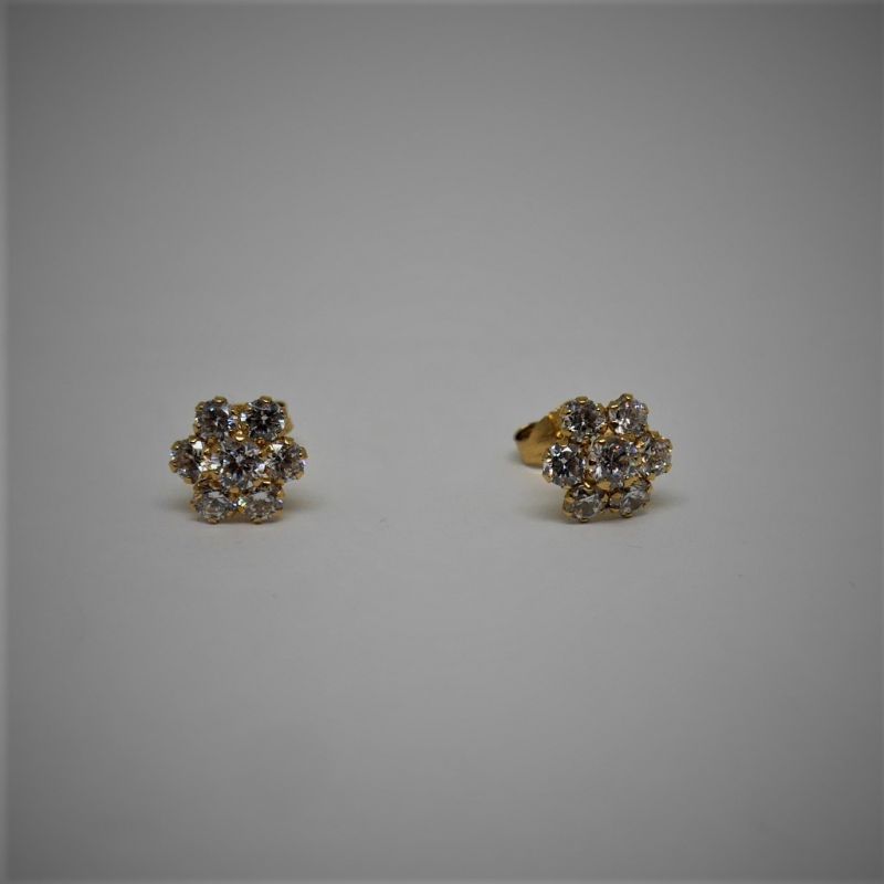 alt="pendientes de oro con circonitas para niña o mujer forma de flor"Pendientes de oro de ley 18 K. con circonitas para niña o mujer en forma de flor
