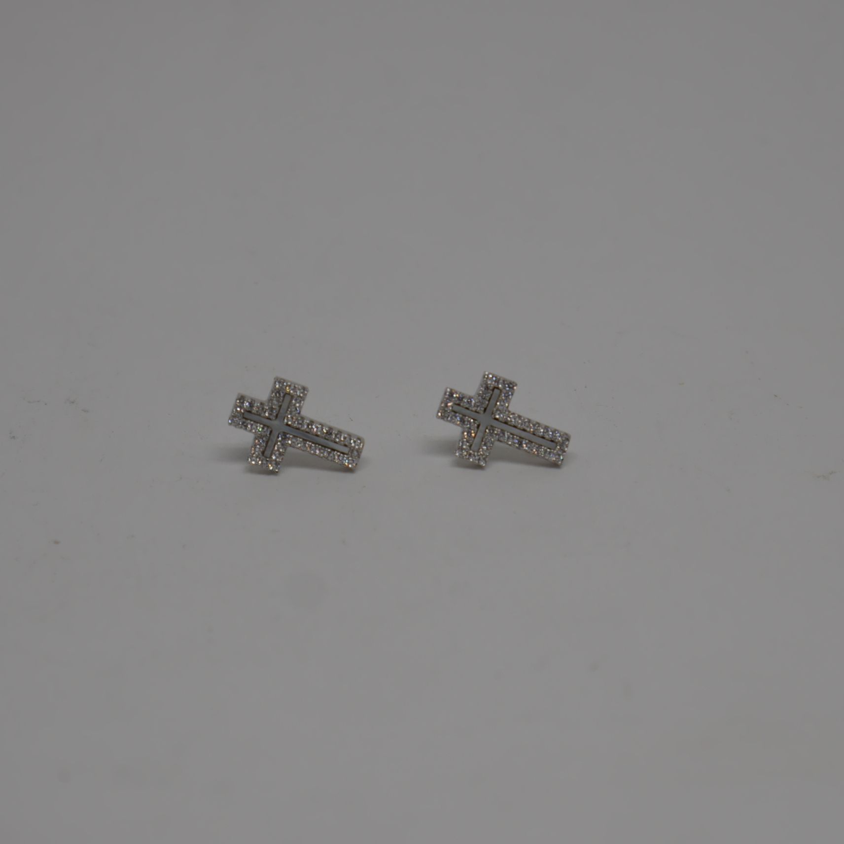 alt="Pendientes largos de Plata de ley Rodinada 925 Mils. con nácar y circonitas en forma de cruz. www.santelmotienda.com"Pendientes de Plata de ley Rodinada con Nácar y Circonitas en forma de Cruz