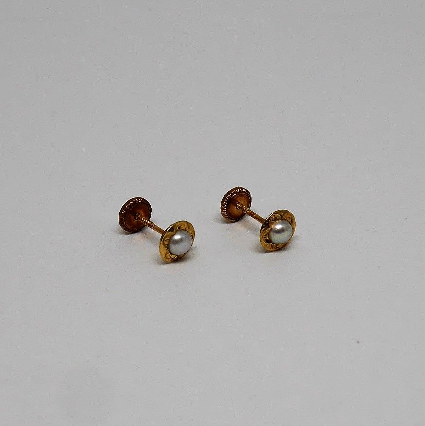 Pendientes niña de oro de ley 18 K. con perla cultivada Japonesa