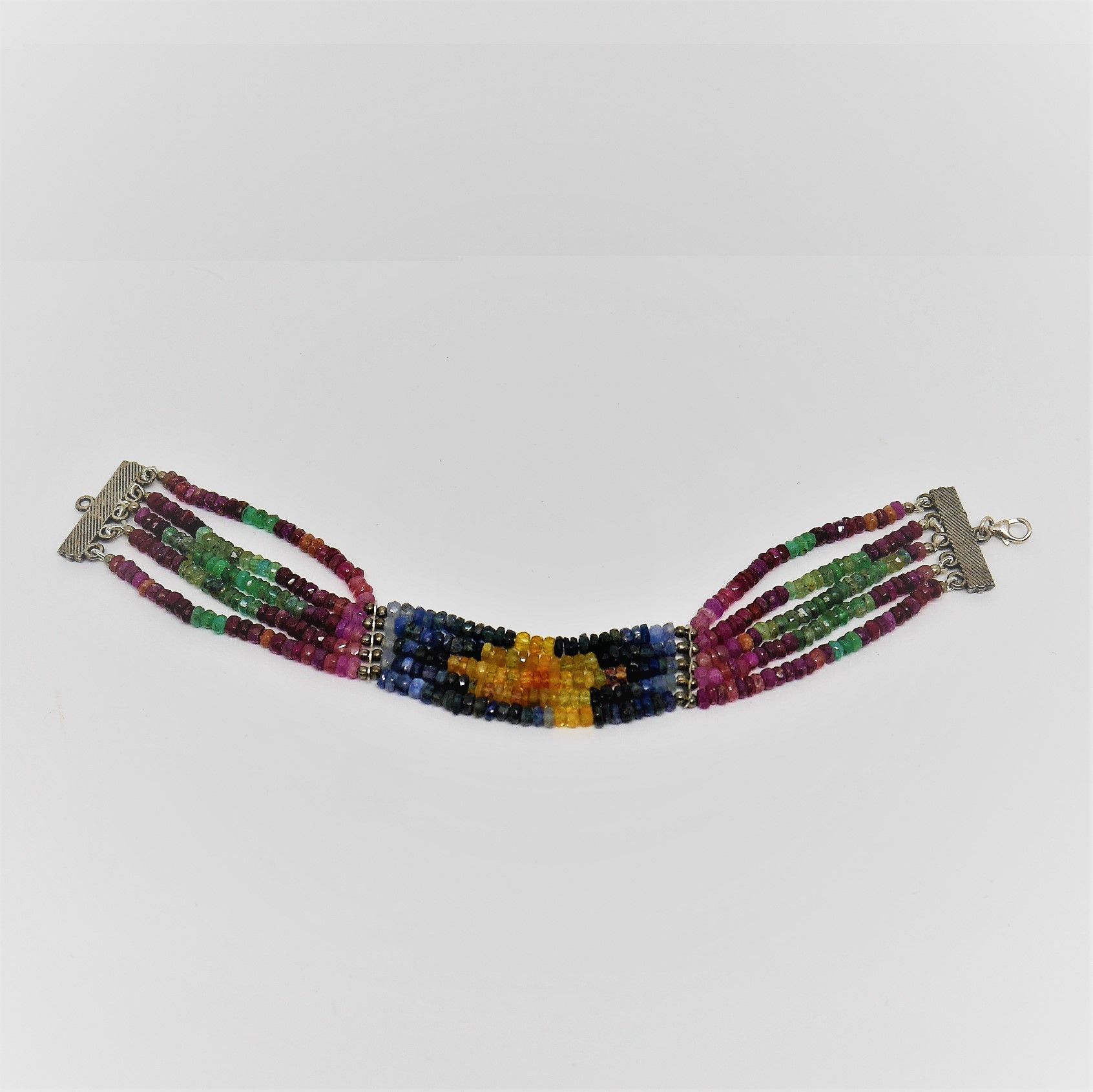 Pulsera 5 vueltas de Plata de ley 925 Mils. con Rubíes, Zafiros y Esmeraldas