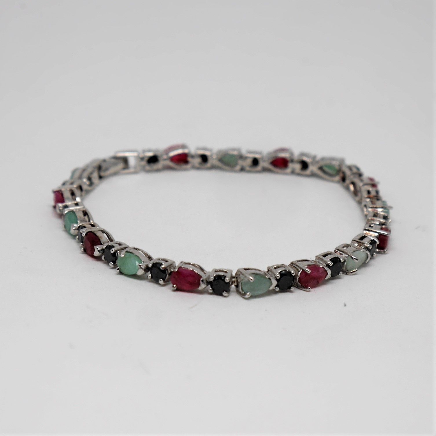 Pulsera de Plata de ley Rodinada 925 Mils. con Rubies, Zafiros y Esmeraldas
