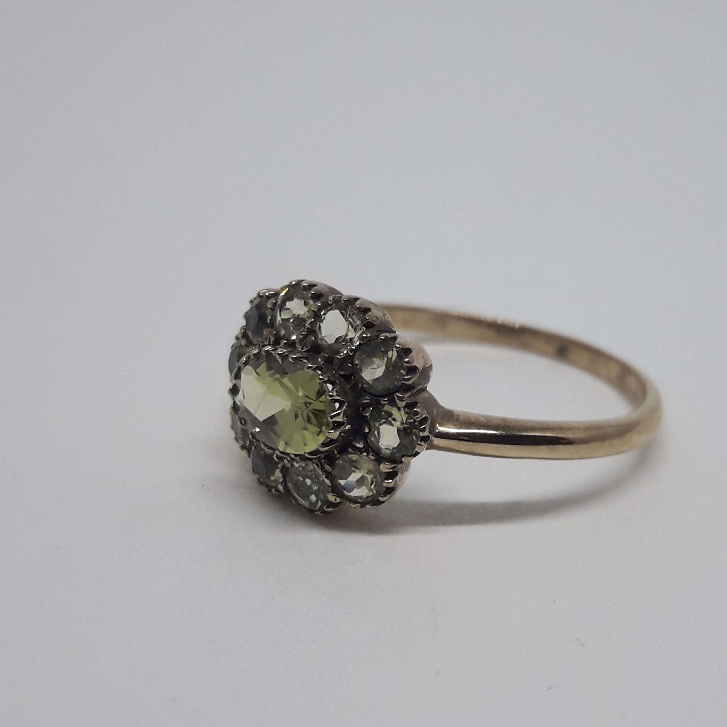 Sortija de oro bajo 9 K. con olivinas