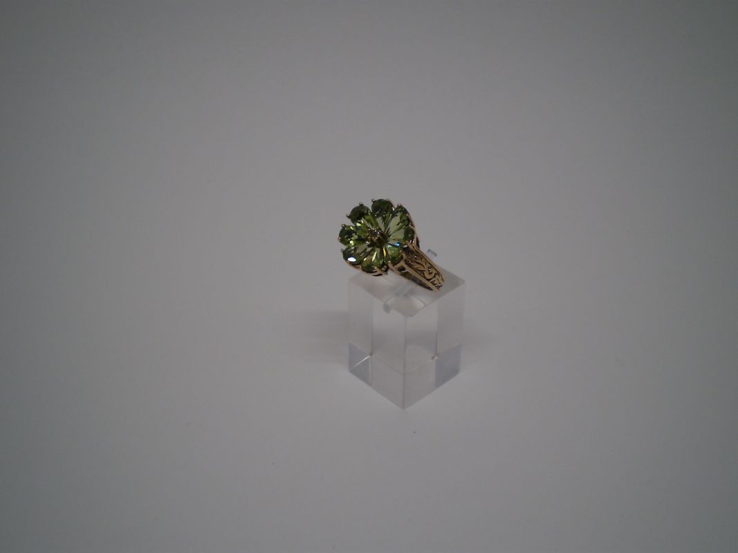 Sortija de oro bajo 9 K. y olivinas en en forma de flor