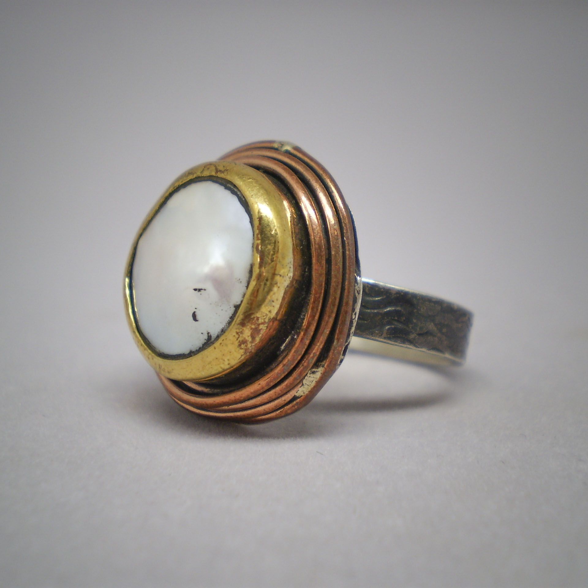 Sortija de Plata y Plata dorada de ley 925 Mils. con Perla natural