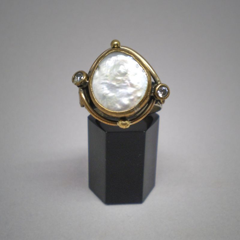 Sortija de plata y plata dorada de ley 925 Mils. con perla natural y 3 circonitasSortija de plata y plata dorada de ley 925 Mils. con perla natural y 3 circonitasSortija de Plata y Plata dorada de ley 925 Mils. con Perla natural y 3 Circonitas