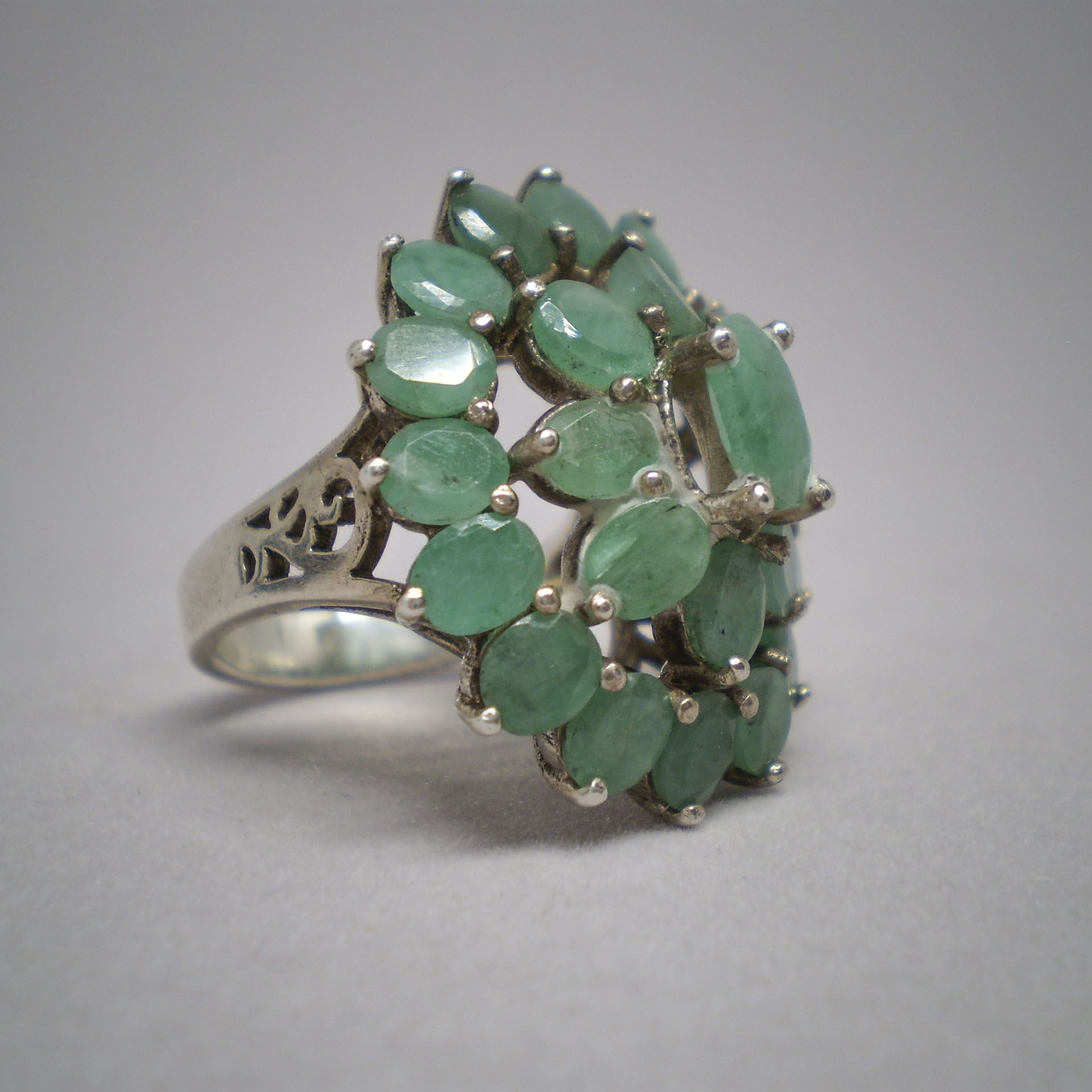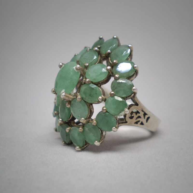 Sortija India de Plata de ley 925 Mils. con 25 Esmeraldas