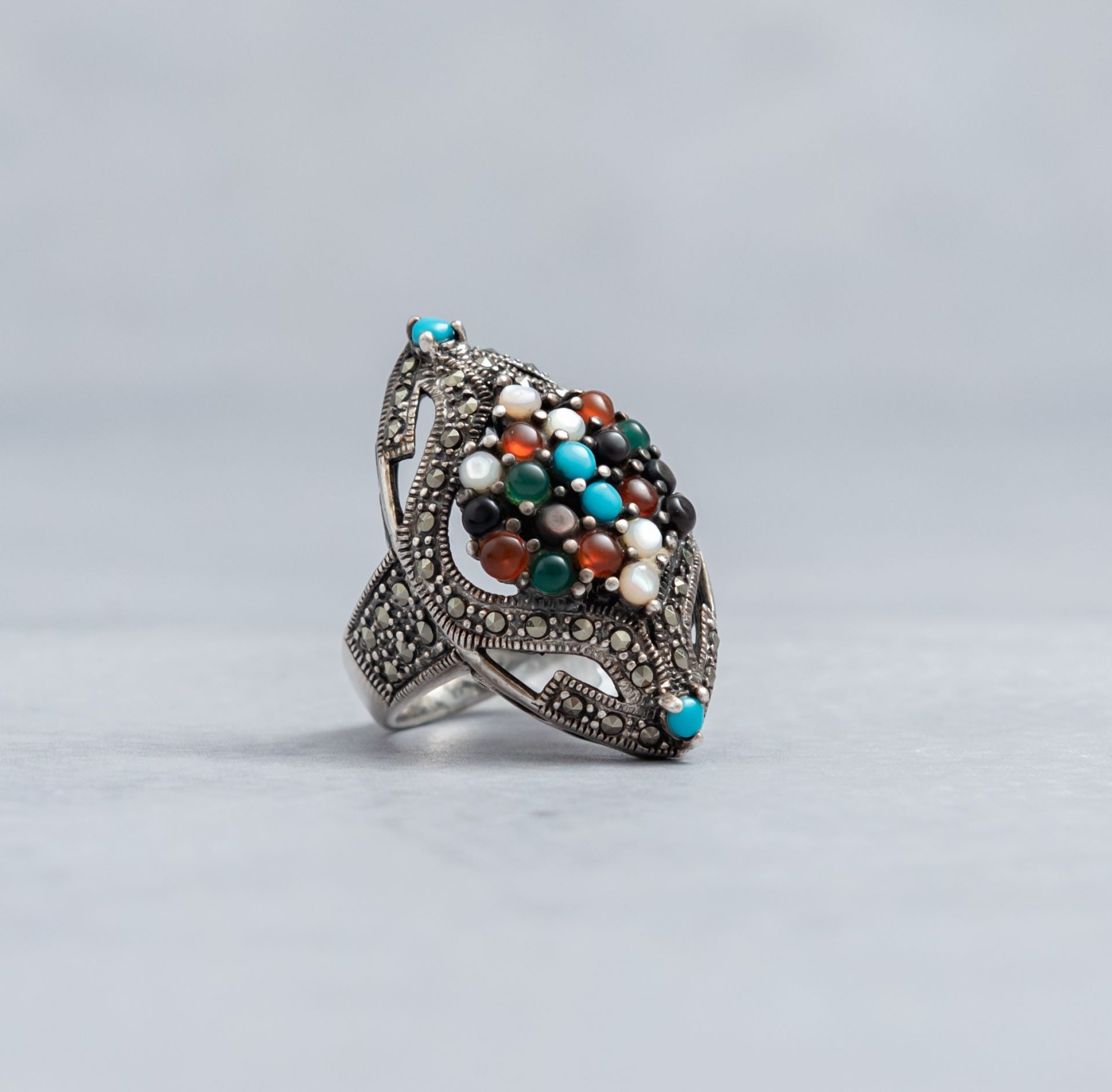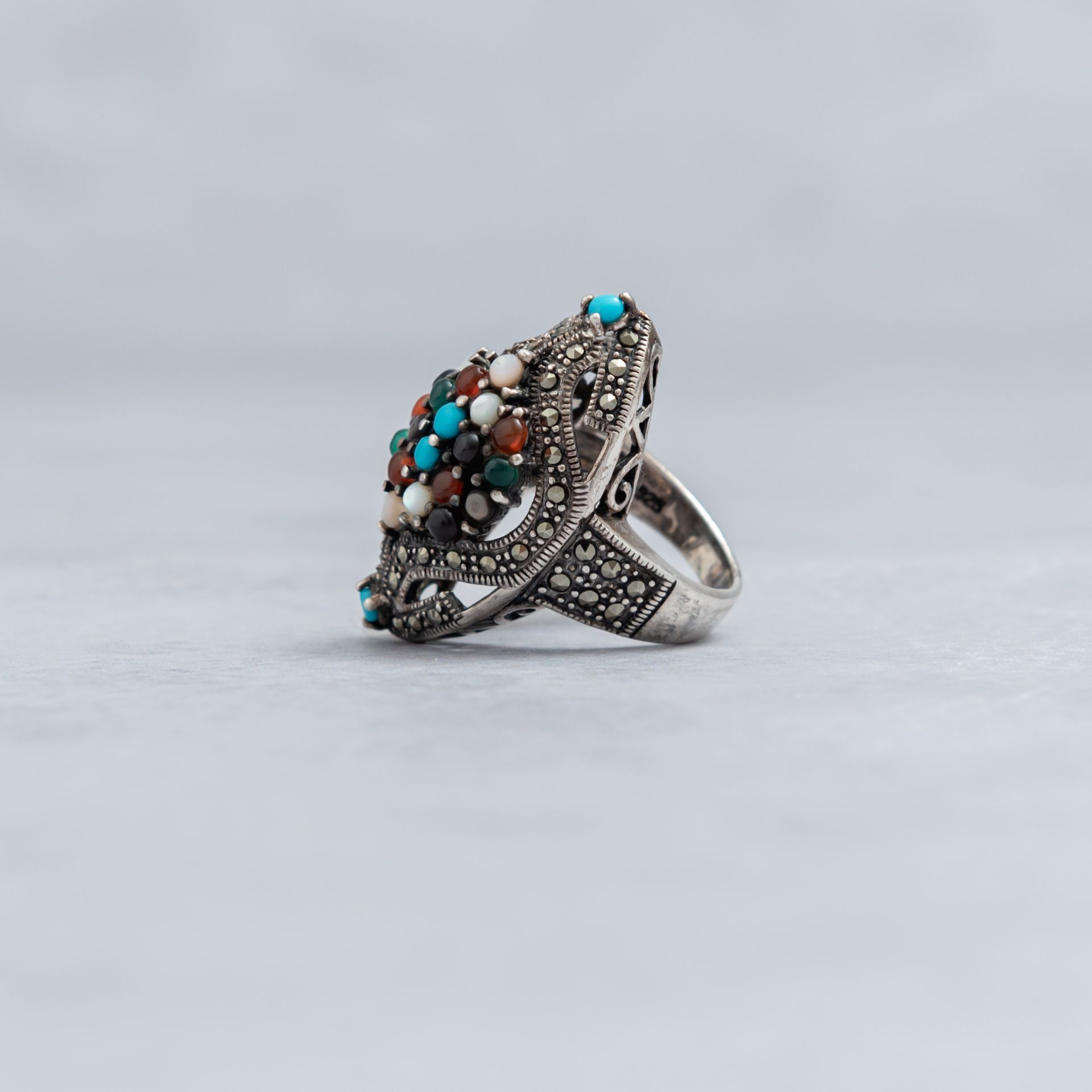 Sortija Lanzadera de Plata de Ley 925 Mils. Con Piedras Semipreciosas